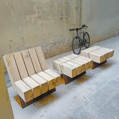 Die Balken aus Hartholz oder dem Rezyklat Lava Grey werden auf Zickzackfüßen aus dickem Stahlblech befestigt. Die Heavy-Heavy Block Seats eignen sich zum Beispiel besonders für den Außenbereich von Universitäten und Schulen, sei es als Einzelsitzer oder im Verbund als Bank. Die Heavy-Heavy Block Seats werden in einer Version mit 3 Balken (48 cm breit) und einer mit 5 Balken (80 cm breit) ausgeführt und sind mit oder ohne Rückenlehne erhältlich.