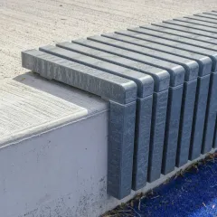Material Plastic recyclate Status 100% recycled Source Pre-consumer waste Beam profile Solid 7x7 cm Max. length 300 cm Color Medium grey with clouds Texture Extra rough mat Years to grey Color stable Density 1060 kg/m³ Lifespan 20-30 years Maintenance None Recyclable Yes
