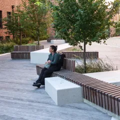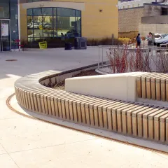 Fine benches, diverseMax length 300 cm Color Red brown Texture Smooth without knots Years to grey 2-3 years Density 1150 kg/m³ Lifespan > 30 years Maintenance None, possible sanding Recyclable Yes Certificate FSC® -