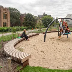 This sheet structure possesses recesses into which the beams are mounted. The transverse Rough&Ready beams, made from hardwood or All Black, are a natural anti-skate solution. Rough&Ready back elements and armrests are easy to mount. Both the Crosswise and Curved Rough&Ready Seat Wall models generally allow customisation.