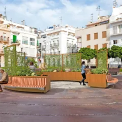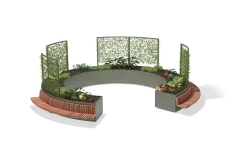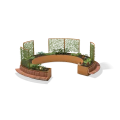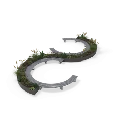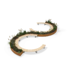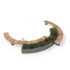 De Shrubtubs Serpentine biedt een elegante combinatie van boombakken en zitelementen in gebogen en cirkelvormige opstellingen.