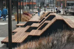 De verschillende gestandaardiseerde modules van 120 cm breed bieden vrijheid in het creëren van Terraces of platforms met één of meerdere niveaus en verschillende rug-opstellingen. De Cliffhanger Terraces zijn in samenwerking met HEWITT architecten in Seattle ontwikkeld op basis van de Cliffhanger Linear Benches.