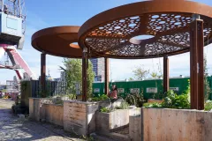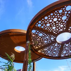 Door meerdere cirkelvormige daken te groeperen ontstaat er een aangename verblijfsplek.